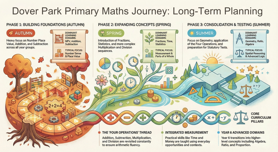 Maths teaching at Dover Park Primary School has a wide application to everyday life. A high-quality maths education will help pupils gain skills essential to everyday life, financial literacy and skills that are essential in most forms of employment. It will provide the children with a solid foundation for understanding the world around them.