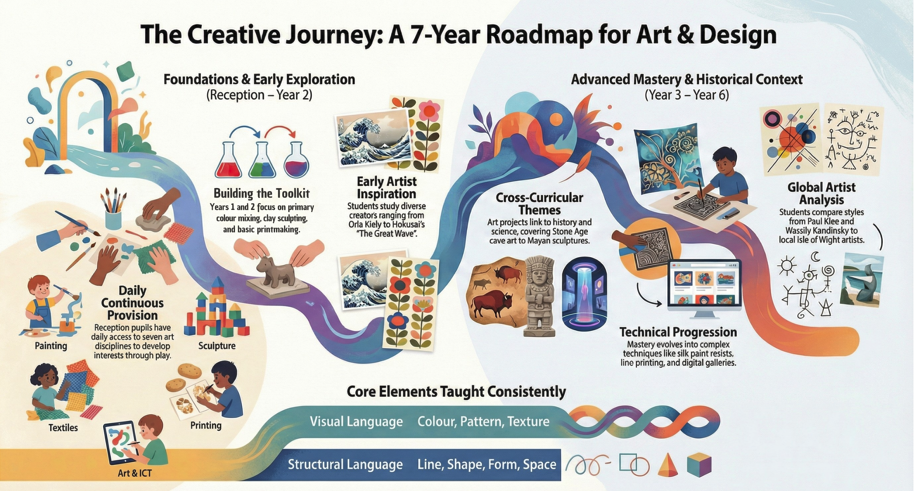 At Dover Park Primary School, our Art & Design curriculum is designed to empower pupils to produce creative work by exploring their own ideas and recording their experiences. We aim to develop proficient artists who can use a range of techniques and evaluate creative works using specific artistic language